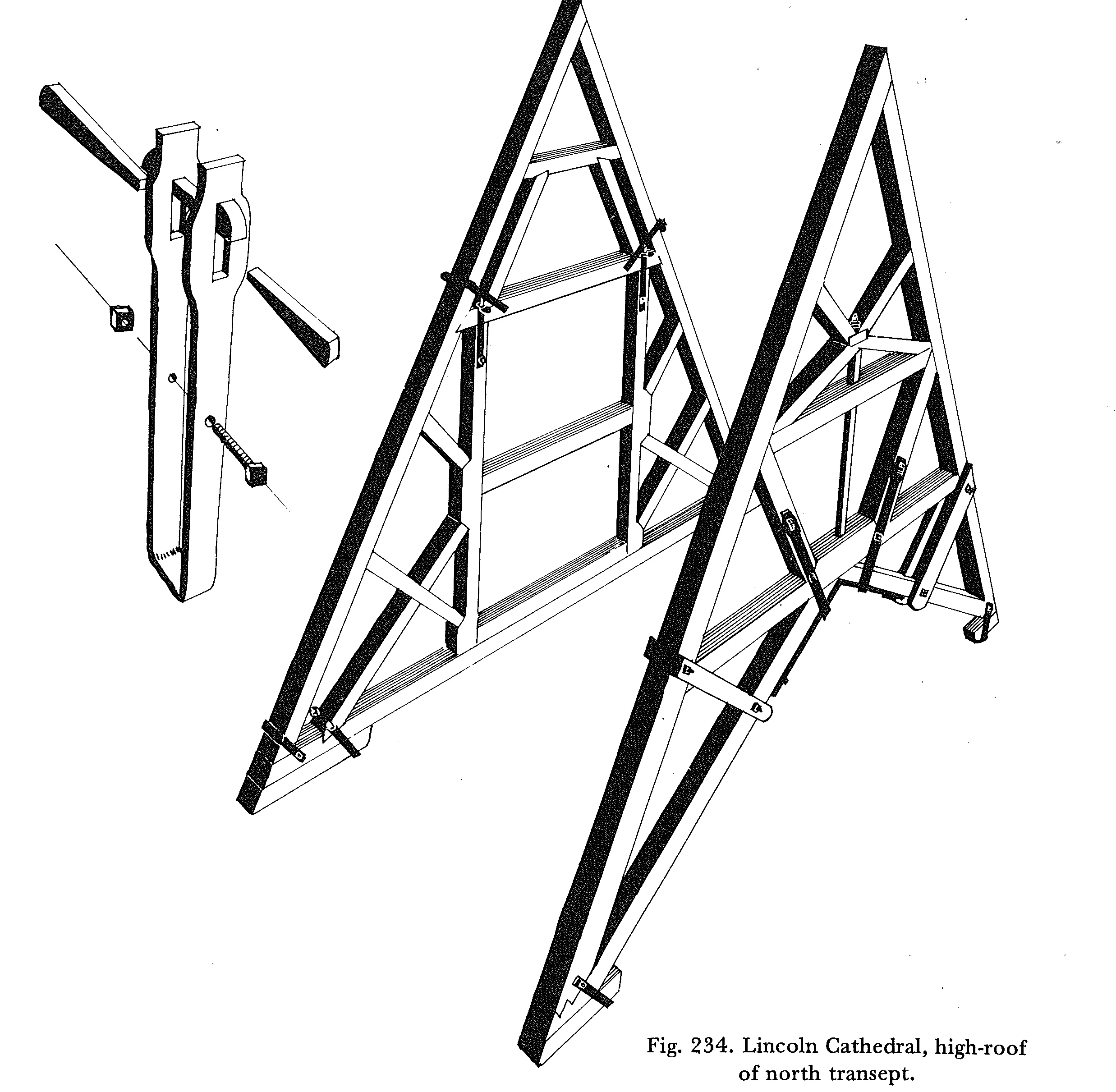 Gib and cotter tensioning system used in Lincoln Cathedral in the early 18th C. As relevant to achieving large span timber structures now as it was then